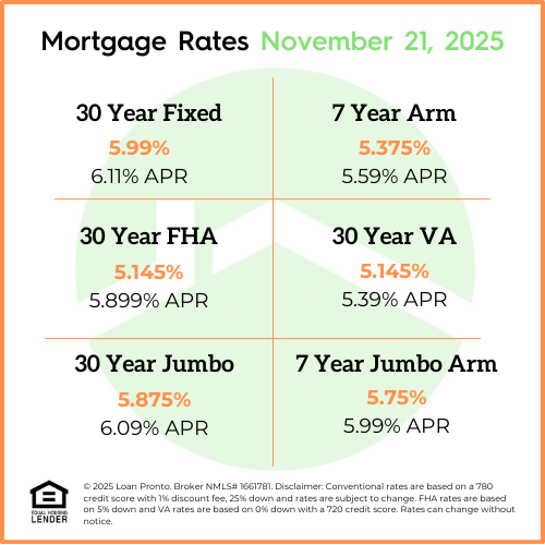 This week The market was calm, and economic data came in close to expectations resulting in mortgage rates edging down slightly. The government also officially reopened after the temporary shutdown, which helped ease some uncertainty in the financial markets. While it didn’t cause a big rate swing, it did help stabilize sentiment.